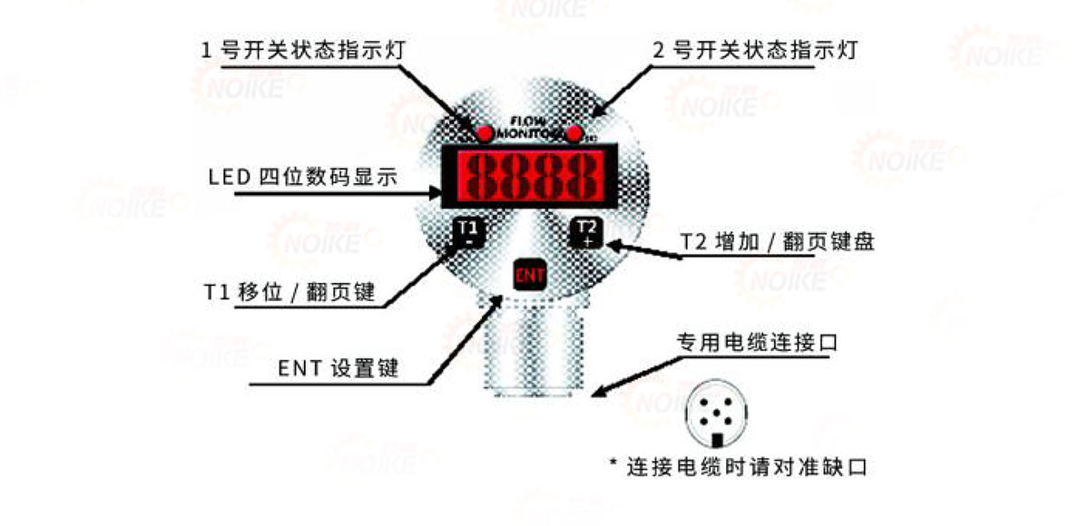 接線時(shí)只要把接線頭母插頭沿著安裝槽插入后將活動(dòng)螺絲旋緊即可,其它部分嚴(yán)禁拆卸和用工具旋轉(zhuǎn),以免損壞流量開關(guān)。