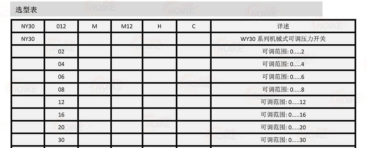 NY3O系列壓力開關內置波紋管和機械機構,當系統壓力上升或下降時,相應的調節彈簧和波紋鋼產生伸張或收縮位移,通過杠桿推動開關動作,切斷或接通控制回路。