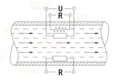 熱導式流量開關,基于熱式原理在封閉的探頭內包含兩個電阻,其中一個被加熱作為探測電阻,另一個未被加熱作為基準電阻,當介質流動時,加熱電阻上的熱量被帶走,電阻值被改變,兩個電阻差值被用作判斷流速的依據。探頭采用抗結垢涂層,能有效防止管道內水垢、銹垢
