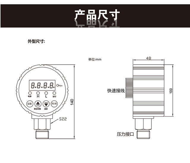 智能壓力開關(控制器)是集壓力測量,顯示,輸出控制于一體的智能數顯壓力測控產品該產品為全電子結構,前端采用帶隔離膜充油壓阻
