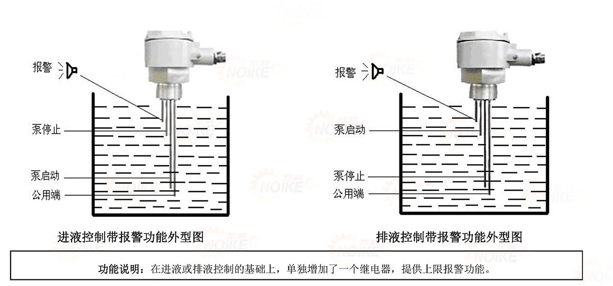 的基礎上增加了上限報警或下限報警功能,防止水位超高溢流或過低空泵運行。