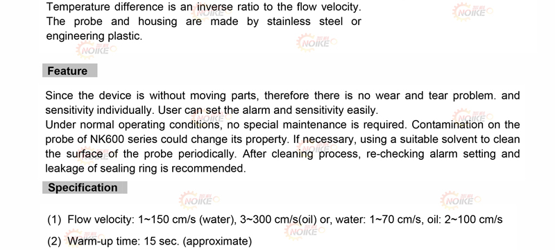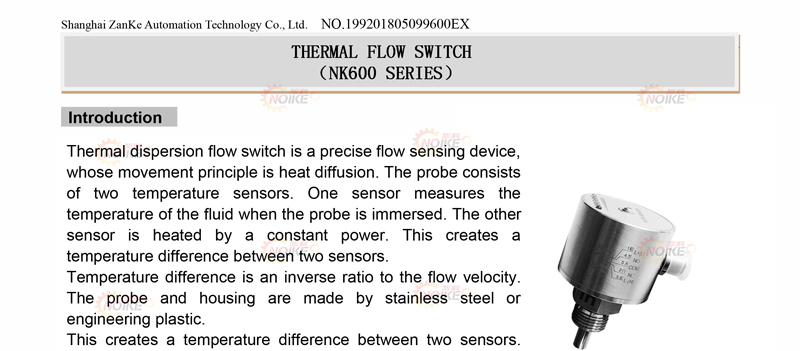 Stainless steel thermal dispersion flow switch NK600