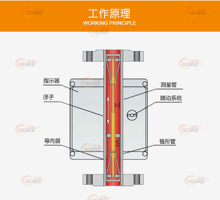 當流體自下而上流過垂直錐形管時,轉子受到兩個力的作用,一是垂直向上的推動力,它等于流體流經轉了與錐形管間的環形面所產生的壓力差;另是垂直向下的凈重力,它等于轉子所受重力減去流體對轉子的浮。當流量加大使壓力差大于轉子凈重カ時轉子就上升。當壓力差與轉子的凈重力相等時轉子處于平衡狀態,即停留在一定位置上在金屬管外表面上刻有讀數,根據轉子的停留位置,即讀出被流體的流量。