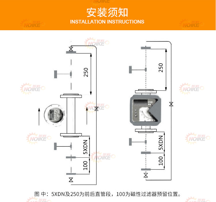 5、由于儀表是通過磁紹合傳遞信號的所以為了保證儀表的性能。安裝周圍至少10米處不允有鐵磁性物質存在。
